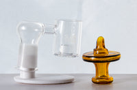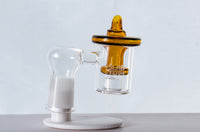 Banger de cuarzo con core reactor marca Slab Team 14mm Hembra de 90 grados con carb cap color amarillo/cafe