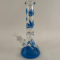 Bong Beaker Hojas Azules de 12.5 pulgadas de alto con bowl macho de 14mm.