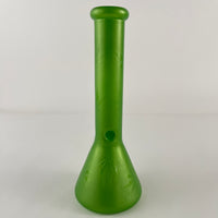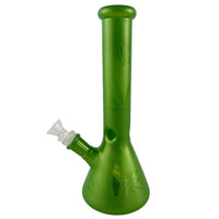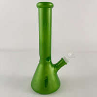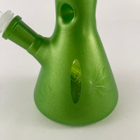 Bong Beaker verde con plantas de weed pintadas de 10.5 pulgadas de alto.