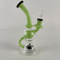 Bong circulo verde con canica color naranja de 8 pulgadas de alto.