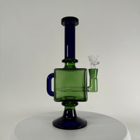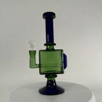Bong cubo verde/azul de 9.5 pulgadas de alto con bowl macho de 14mm.