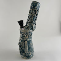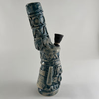 Bong Maya azul artesanal de cerámica de 13 pulgadas de alto.