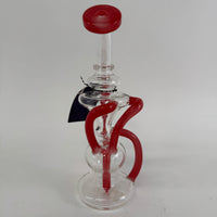Bong Recycler rojo de 9 pulgadas de alto con banger macho de 14mm.